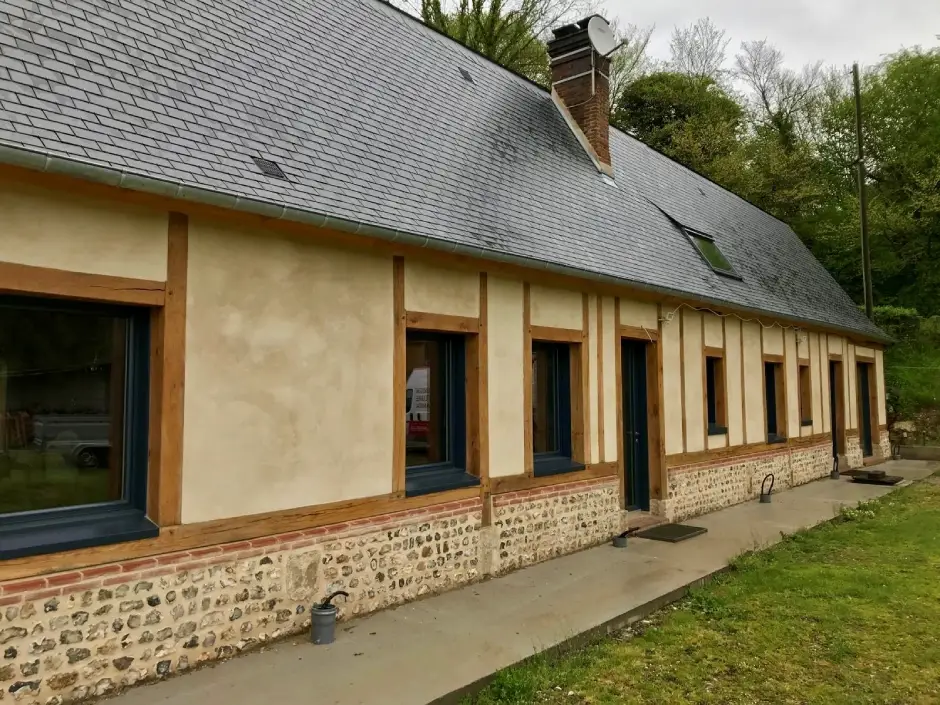 La pose complète de menuiseries extérieures en aluminium gris anthracite, apportant une touche moderne tout en respectant l’authenticité de la bâtisse. ![]()
